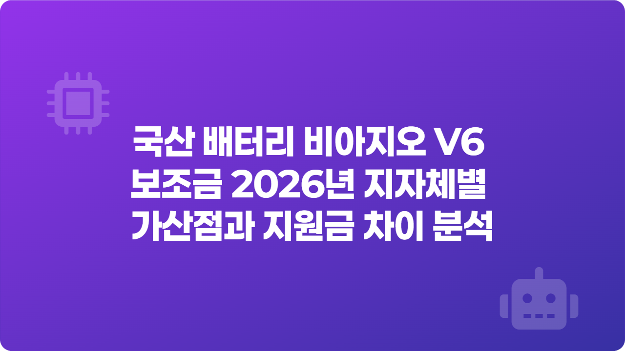 비아지오 V6 보조금은 국산 배터리 여부보다 지자체 정책 구조에 의해 결정되는 경우가 대부분입니다.