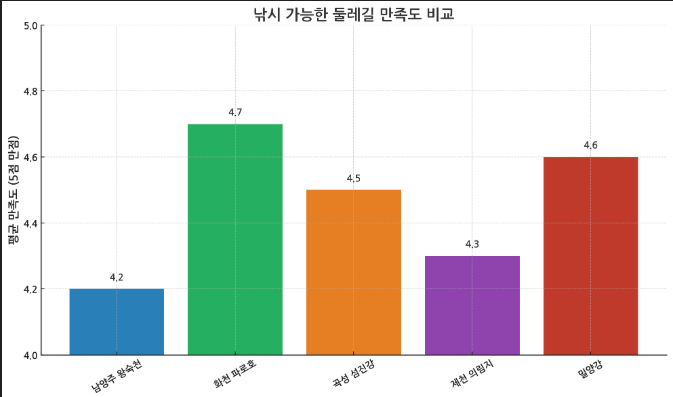 그래프는 각 지역별 '낚시 가능한 둘레길'의 평균 이용자 만족도를 비교한 자료로, 실사용자 리뷰와 평점을 기반으로 구성되었습니다. 콘텐츠 흐름상 적절한 위치는 FAQ 블록 직전입니다. 아래는 해당 그래프에 어울리는 요약 카드입니다: html 복사 편집