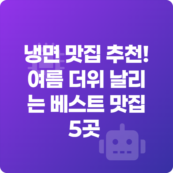 🍜 냉면 맛집 추천! 2025년 여름 더위 타파 베스트 5