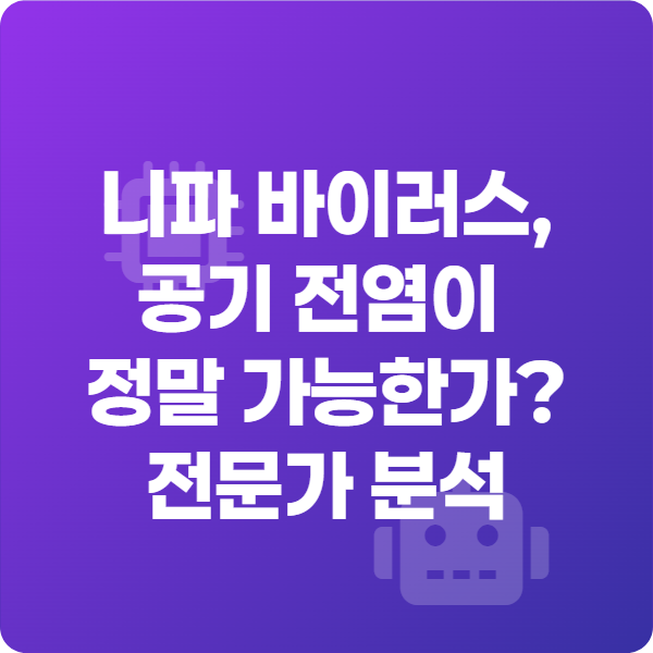 니파 바이러스는 높은 치사율로 주목받지만, 공기 전염 가능성은 제한적입니다. 밀접 접촉 회피, 마스크 착용, 손 위생이 핵심 예방 수단입니다.