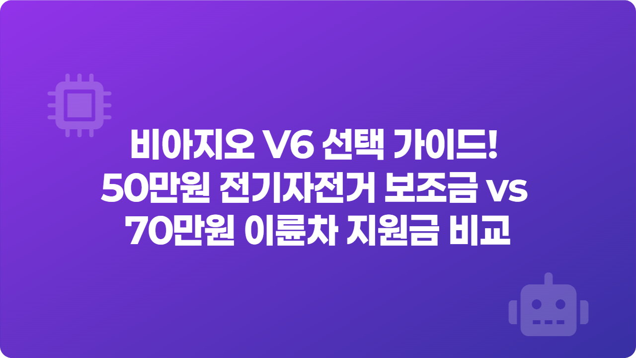 비아지오 V6 선택 가이드! 50만원 전기자전거 보조금 vs 70만원 이륜차 지원금 비교