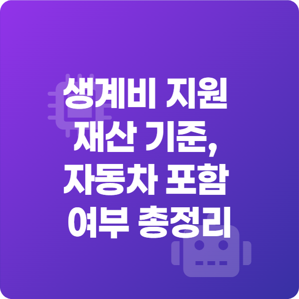 이 글에서는 생계비 지원 재산 산정 시 자동차 포함 여부와 감가 기준, 부동산·금융자산 포함 여부, 그리고 실제 사례를 통해 이해할 수 있도록 정리했습니다.