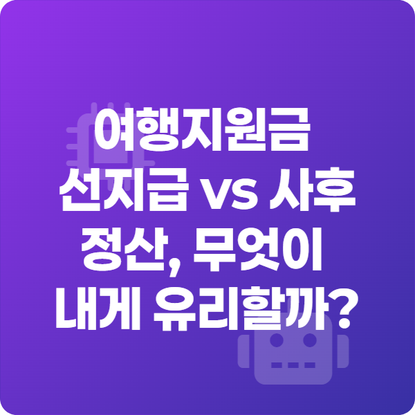 사후정산은 여행 후 사용 내역을 확인하고 지급하는 방식으로, 신청 조건이 비교적 유연합니다. 하지만 지급 과정에서 정산 절차가 필요하고, 실제 수령까지 시간이 걸릴 수 있다는 점을 감안해야 합니다.
