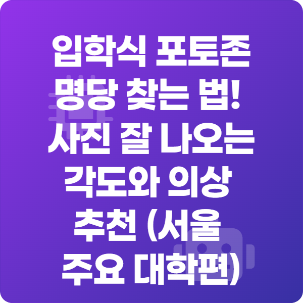 서울 주요 대학 입학식에서 포토존 사진을 잘 남기려면, 명당 위치, 각도, 포즈, 의상을 미리 계획하는 것이 중요합니다.
