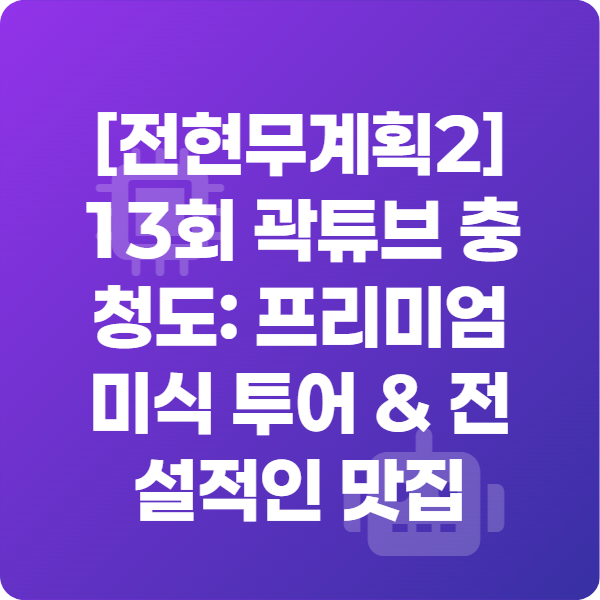 최근 방영된 전현무계획2 13회에서는 방송인 전현무와 여행 유튜버 곽튜브가 충청도로 떠나 숨겨진 프리미엄 미식 투어를 선보였습니다.