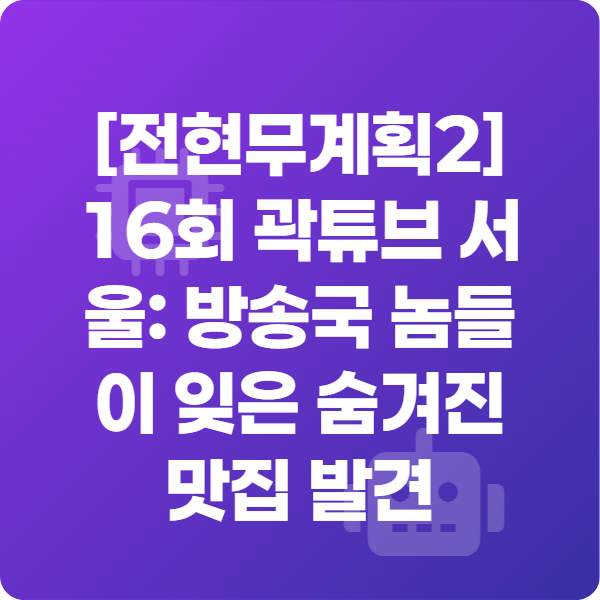 전현무계획 16회 곽튜브 서울편은 화려한 미식 여행이 아닌, 서울 서민 음식의 진수를 보여주는 ‘방슐랭 투어’로 꾸며졌어요.뚝배기 맛집과 닭볶음탕 같은 소박하지만 깊은 맛의 한 끼가 주인