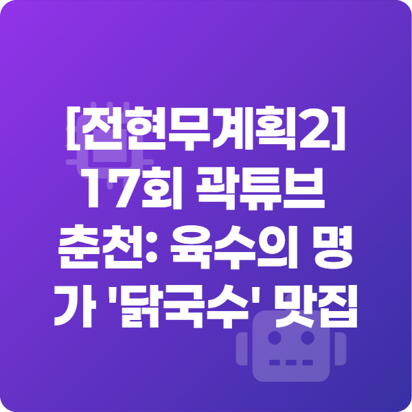 | [전현무계획2] 17회 춘천 닭갈비: '무계획'이 극찬한 '인생 닭갈비'와 막국수 (1) | 2025.08.19 |