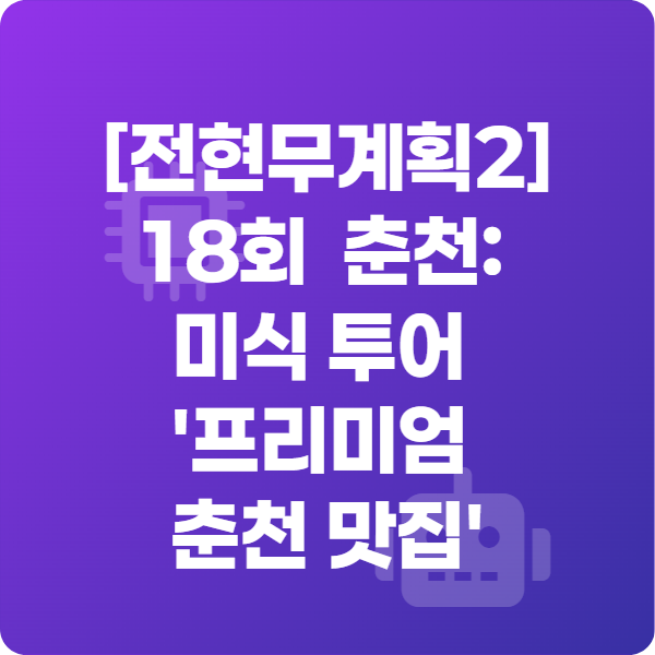 [전현무계획2] 18회 춘천 숨겨진 맛집: '무계획'이 찾은 두부 요리와 막국수 (0) | 2025.08.19 |