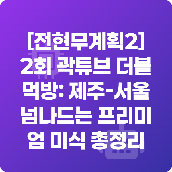 제주와 서울을 오가며 진행된 [전현무계획2] 2회 곽튜브 더블 먹방의 핵심 맛집과 프리미엄 미식 경험을 정밀하게 분석해드려요.