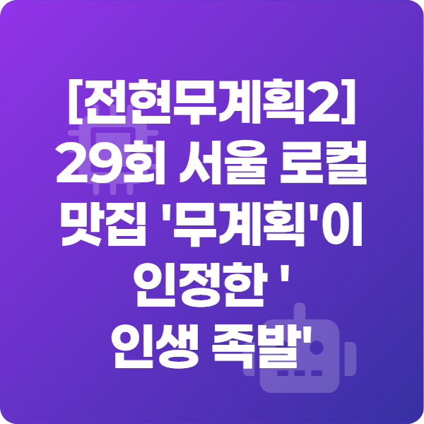 서울 여행을 해도 늘 똑같은 관광 코스, 똑같은 프랜차이즈 음식점만 간다면 아쉽잖아요.전현무계획2 29회에서는 곽튜브와 전현무가 함께 나서,진짜 현지인들이 찾는 찐 로컬 맛집을 탐방했어요