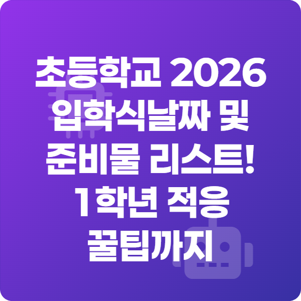 초등학교 2026 입학식 날짜 및 준비물 리스트! 1학년 적응 꿀팁까지