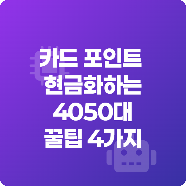오늘은 4050 세대를 위해 카드 포인트를 현금처럼 바꾸는 4가지 실전 꿀팁을 정리했습니다.