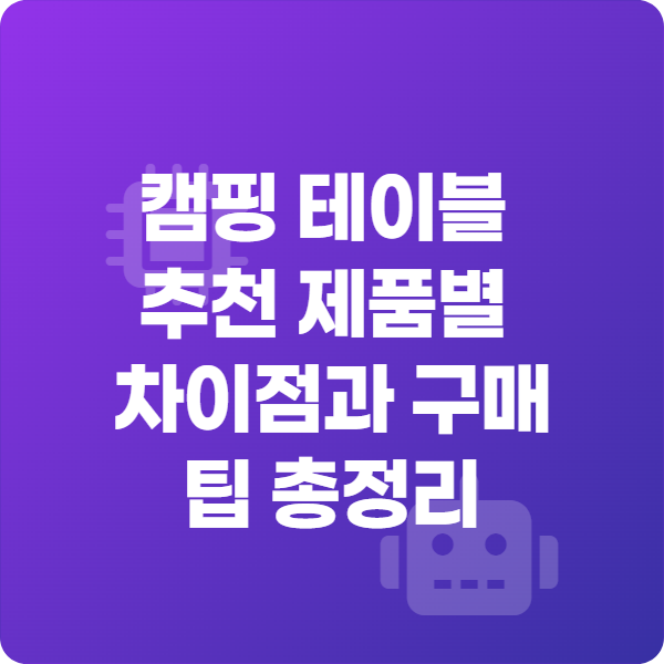 캠핑 테이블은 단순 소품이 아니라 캠핑 경험의 질을 좌우하는 핵심 장비입니다. 무게·재질·내구성·가격을 고려해 자신에게 맞는 제품을 고르면 장기간 만족도를 높일 수 있습니다.