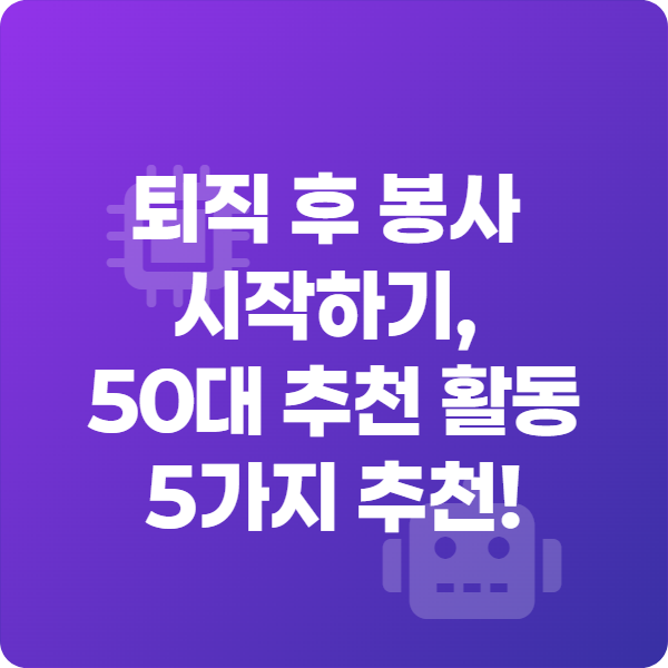 퇴직 후 봉사는 단순한 여가가 아니라 새로운 삶의 전환점이 됩니다. 누군가에게 도움을 주는 일은 결국 자신을 성장시키는 과정이죠. 오늘 하루, 주변의 작은 봉사부터 실천해 보세요. 당신의 따뜻한 손길이 또 다른 인생의 힘이 됩니다.