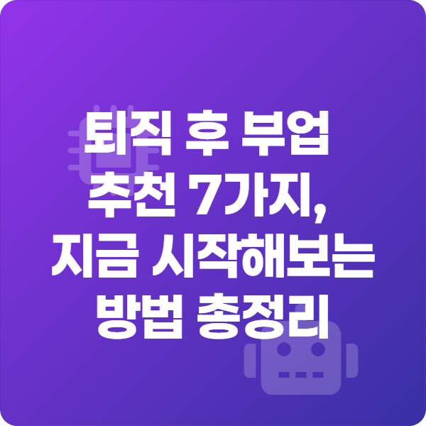 이 글은 퇴직 후 바로 실천 가능한 부업 아이디어 7가지와 함께,