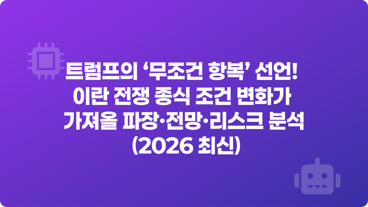 트럼프의 ‘무조건 항복’ 선언! 이란 전쟁 종식 조건 변화가 가져올 파장·전망·리스크 분석 (2026 최신)