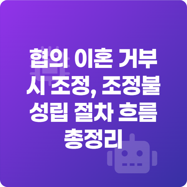 오늘 글에서는 협의 이혼 거부 시 조정 불성립 절차 흐름을 한 번에 정리했습니다.