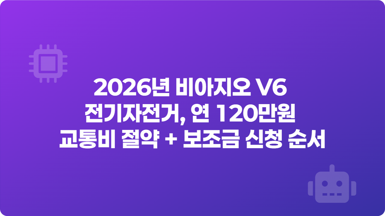 | 비아지오 V6 선택 가이드! 50만원 전기자전거 보조금 vs 70만원 이륜차 지원금 비교 (0) | 2026.04.25 |