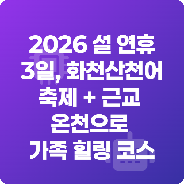 2026년 설 연휴(3일)는 1월 중순~말 사이로, 화천 산천어축제(1월 10일~2월 1일) 기간과 겹칩니다.