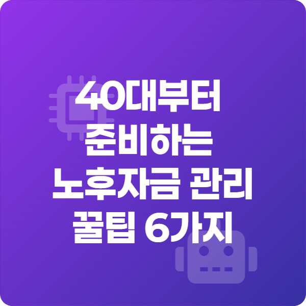 이 글에서는 40대가 반드시 알아야 할 실전 노후자금 관리 꿀팁 6가지를 정리했습니다.