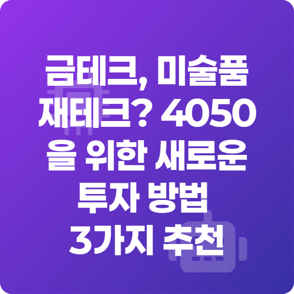 아트테크라고 불리는 미술품 투자는 4050 세대에서 빠르게 확산 중이에요. 서울옥션, 케이옥션 자료에 따르면 2024년 미술품 거래액은 1조 1천억 원으로 5년 전보다 3배 증가했어요. 블록체인 기반 조각투자 플랫폼을 활용하면 수백만 원대 작품도 10만 원 단위로 분할 투자할 수 있어요.