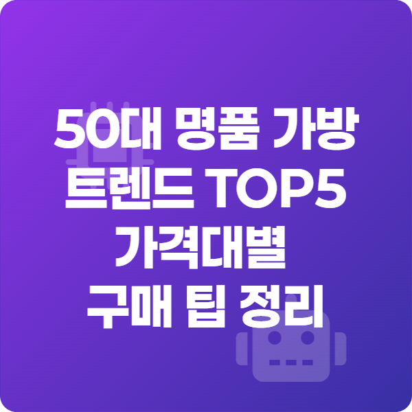 50대의 명품 가방은 단순한 사치품이 아니라 나의 경험과 스타일, 그리고 투자 가치를 담는 아이템입니다. 가격대별로 전략을 세우고, 브랜드·소재·컬러를 신중히 선택해보세요.